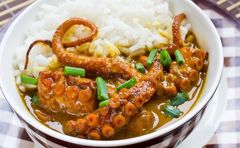 Это блюдо также называют кари коко зурит, и главным его ингредиентом являются щупальца осьминога. Щупальца нарезают, а затем готовят на медленном огне в жирном кокосовом молоке. Затем его приправляют смесью местных трав и специй, включая чеснок, корицу, свежий имбирь, шафран, куркуму, острый перец чили и, конечно же, порошок карри.